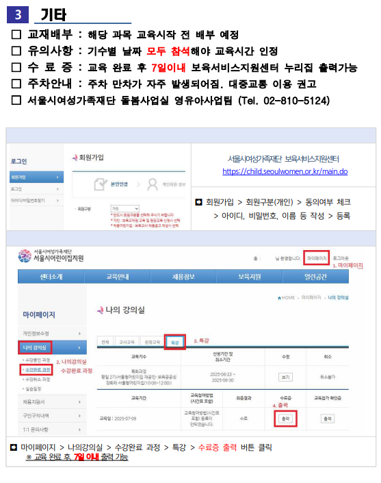 HOME 열린공간 공지사항 공지사항 공지사항 상세 화면 페이지 고정여부 작성자 관리자 제목 2026년 서울형어린이집 원장 특강 안내 등록일 2026-01-23 첨부파일 첨부파일 * 서울형 교육시간 인정 가능합니다.* 주차비 개인 부담입니다. 확인