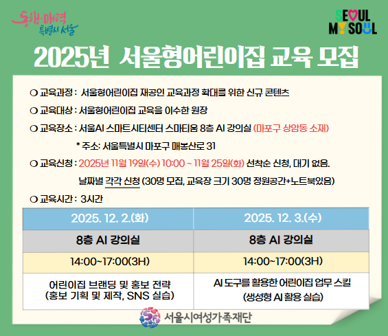 - [ 재무회계 교육] 서울시 어린이집 원장 대상 ... [2025-11-10]